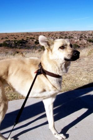 She is 4 years-old. I adopted her from a German Shepherd rescue center in Indianapolis, Indiana, when she was 8 weeks. Her mother was on-site and was a Golden Retriever mix. When Greta was 4 months-old she was hit by a car (a hit and run), and it left her front right leg paralyzed from the shoulder down, her back left leg broken in half, and her left lung punctured. The vet put a rod in her back left leg until the bone healed (however she won't put all her weight on that leg - I don't think the bone healed correctly) but her right front leg never regained feeling. About a year after her accident I had to amputate that leg because she was chewing on it as it was becoming cumbersome to her and she was possibly feeling "phantom pain."