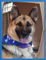 Gretchen is the proud mother of our 2017 H litter who have since been adopted. The father was Apollo, who is also available for adoption. Their owner needed surgery and was not able to care for Apollo, Gretchen, nor the H litter, so he asked Coastal GSR for help and we took them all in.