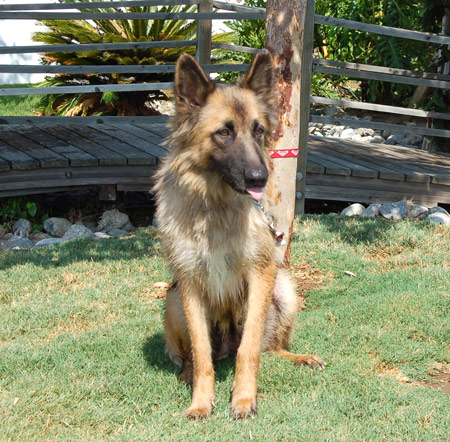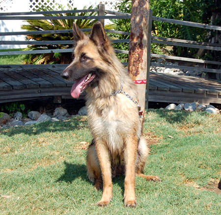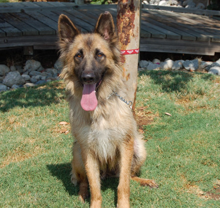August 11th was her first day out at an adoption event. She met about 12 other dogs in the rescue and was very well behaved. Gypsy is supposed to be a long haired German Shepherd . . . after grooming her, she blew out most of her coat, and because she hasn’t been given the right nutrition her fur is not as healthy as it should be, it is very dry and it started to “break” everywhere. We can’t wait too this girl bloom in a few weeks with the proper TLC. She will truly be a knock out.