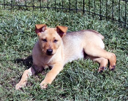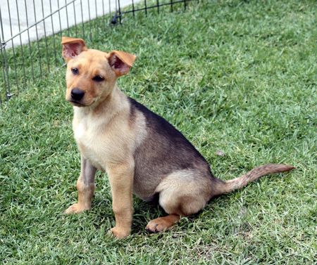 The largest and most energetic of the H pups, Hannah is confident and playful. She showcases German Shepherd markings, but a cute pointy nose and floppy ears. Hannah is well potty trained and is learning to come when called. She's the leader of the bunch and will grow to around 55-70 lb. She'll need someone to remind her occasionally that she's not the boss.