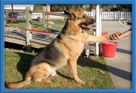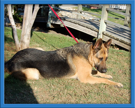 Hans is in a foster home where he gets to go to doggy daycare during the week. He is a perfect gentleman. He loves to go for walks, he has a very good obedience background and he is housebroken. Hans probably weighs close to 100 lbs perhaps a little more.