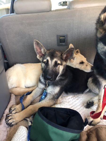 Harley and her five siblings were born to Gretchen and Apollo who are also available for adoption from Coastal GSR. Their owner needed surgery and was not able to care for the litter or their parents afterwards. He asked Coastal GSR for help and we took them in.