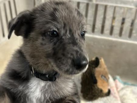 The puppies were born in a foster home. They are healthy, happy and mostly boisterous little pups. They received their first puppy vaccination and a microchip. They are ready to leave the litter and go into their forever homes. Harmony is one of the larger pups. She is energetic, boisterous, and playful.