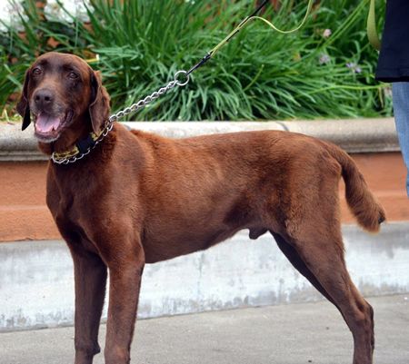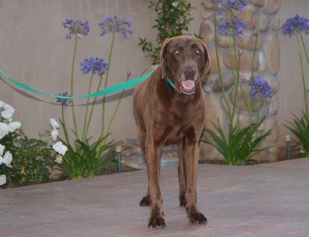 Harper came to us by way of Mexico. He is very mellow, except when small dogs are close by and then he keeps a pretty close eye on them, but only occasionally barks. This handsome Chocolate Lab gets along with other dogs just fine, male or female, is good on a leash and would make a great addition to any family.
