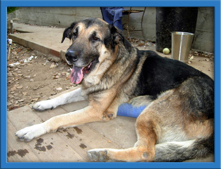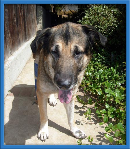 Update: 9/11/09 pm: Harvey is safe with Coastal GS Rescue!! We picked him up this afternoon and did not make it back to Orange County in time to get him to our trusty vet. He is resting tonight on pain meds and we are making him comfortable. He goes in first thing in the morning to be seen by our veterinarian. What we can tell you about Harvey is this.....he is SWEETER than sweet. A complete love bug and even though he is pain and very depressed, he is starting to turn his frown upside down!