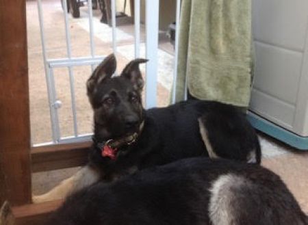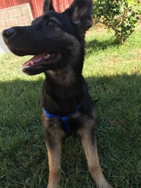 Helena and her five siblings were born to Gretchen and Apollo who are also available for adoption from Coastal GSR. Their owner needed surgery and was not able to care for the litter or their parents afterwards. He asked Coastal GSR for help and we took them in.