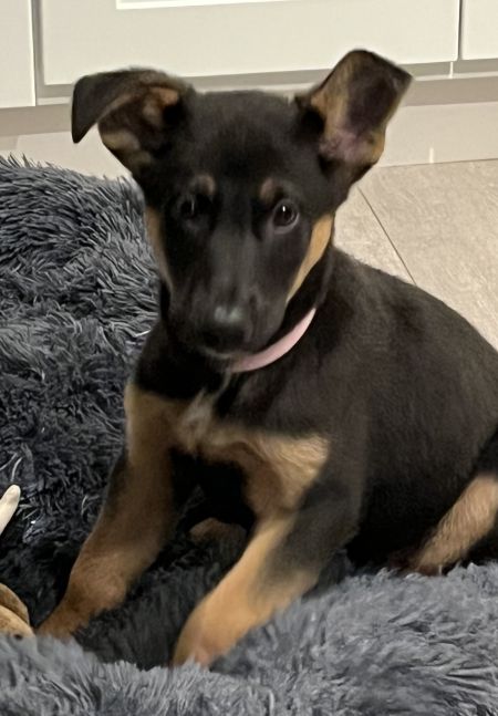 Henderson is a 10 week old German Shepherd and Australian Shepherd mix puppy born to mom Halle. Halle gave birth to 7 males and 5 females. He is predominantly black and tan with a slight touch of white.