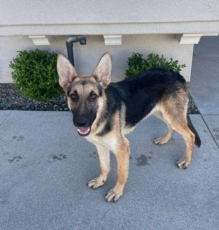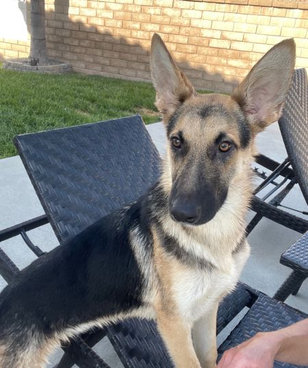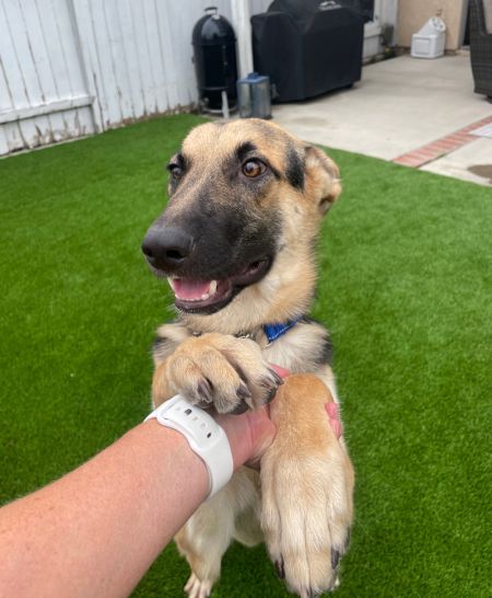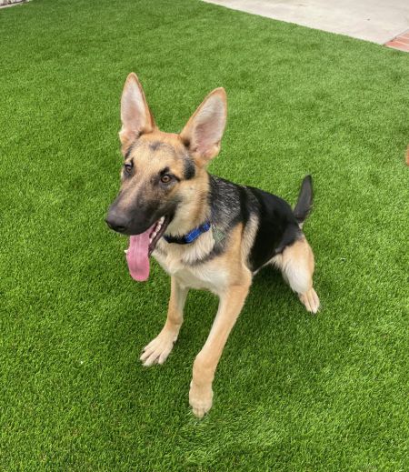 Meet Hopper! He is your calendar perfect black and tan German Shepherd. He has puppy breath, ears for days and the hops to prove that he is still in puppyhood. Hopper is a quick learner and will be mastering his basic obedience in a nanosecond.