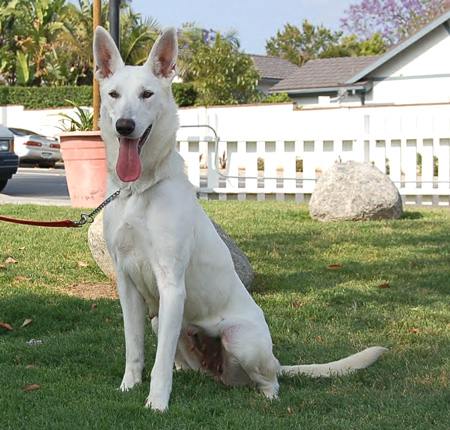 Ice came to us from a far flung shelter and had little hope for getting out. She is a beautiful young girl, most likely under 2 and in need of some weight and muscle gain. She absolutely loves everyone she meets, human and canine. On her first day in the rescue, she got to go for a big walk with 3 other orphans - Ruby, Topaz and Bandit - all four were so well behaved for being brand new recruits. Ice was walked by a 9 year old with no problem.