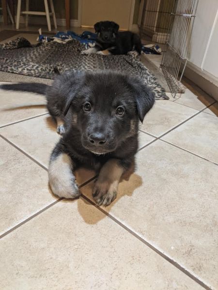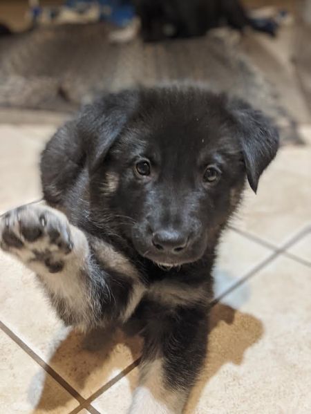 The puppies have been weaned, vaccinated, and microchipped and are ready to go home the weekend of December 21st. They are at three different foster homes now. They are socialized with other dogs and people. They are a really lovely and happy group of GSD puppies.