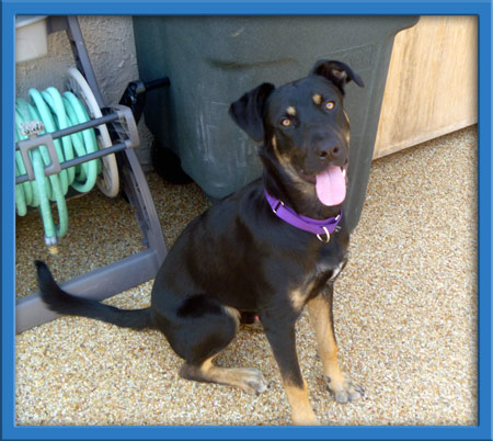 A Shepherd/Lab mix, Indy is still under a year old. Hard to believe such a young, sweet boy had only moments left to live before a miracle occurred where we could intervene. Indy came to us with a severe case of Demodex, but his coat has filled in and he's quickly turned into a gorgeous guy considering the shape he was in when first rescued.