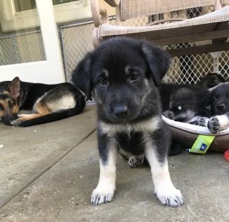 Ivy, the mom, is a purebred German Shepherd Dog (GSD). We don't know what the father was but a DNA test done on one of the puppies indicated that they are ~90% GSD and possibly 10% Boxer.