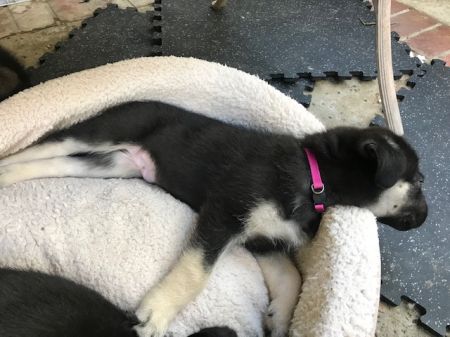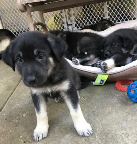 The puppies have been weaned, vaccinated, and microchipped and are ready to go home the weekend of December 21st. They are at three different foster homes now. They are socialized with other dogs and people. They are a really lovely and happy group of GSD puppies.