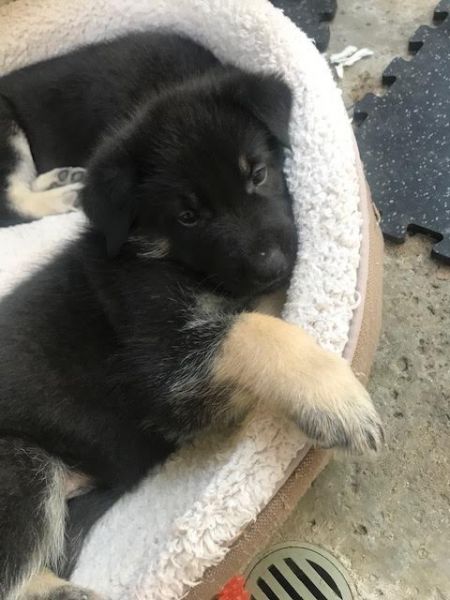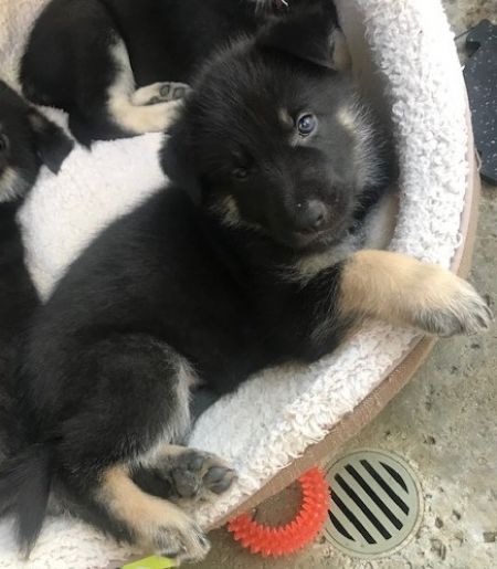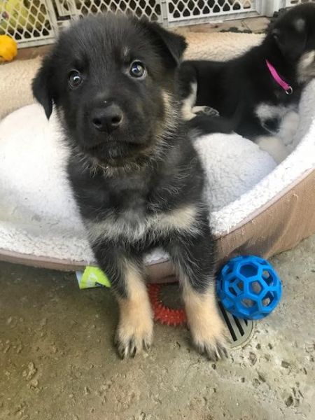 The puppies have been weaned, vaccinated, and microchipped and are ready to go home the weekend of December 21st. They are at three different foster homes now. They are socialized with other dogs and people. They are a really lovely and happy group of GSD puppies.