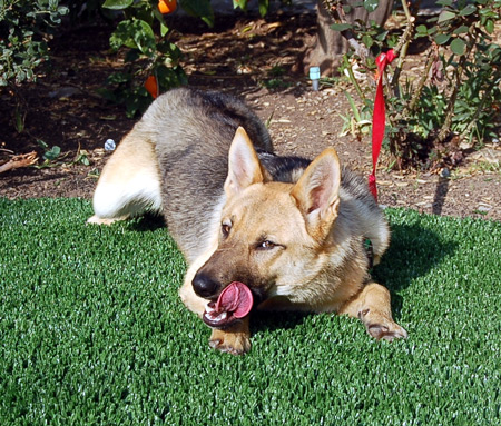Within an hour of being part of a pack, Jack regained his joy of living, his high play quotient and general teenage boy hijinks. Jack LOVES other dogs and would do well with a dog near his own age with the same energy level. He has the personality of a pup and clearly has had little supervision, direction or discipline in his young life. But he definitely wants to please and, while a little hand shy, he is coming around quickly.
