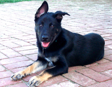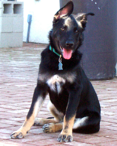 Upon closer inspection, it appears Jackson has some adult teeth, which makes him closer to 7 months. He currently weighs 30 lbs - we suspect he won't weigh more than 50 lbs at full size. He's a petite little guy (at least compared to a full shepherd).