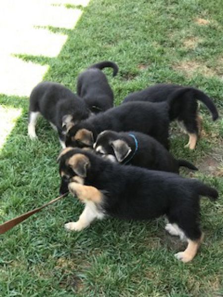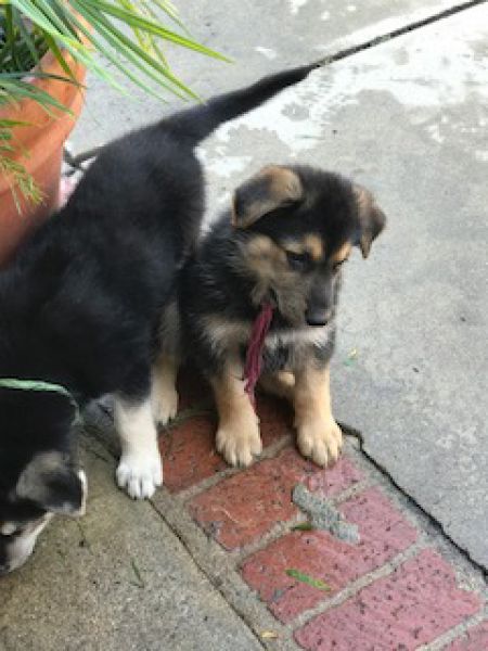 Meet the J litter! Their mom is Juno who is a small black German Shepherd. Their father is unknown. They were born in a shelter and went to a foster family in August. They are total love bugs and are total sweethearts! They have been around lots of people and other dogs. They are very social and sweet. We think that they may be a mix of German Shepherd and possibly Australian Shepherd.