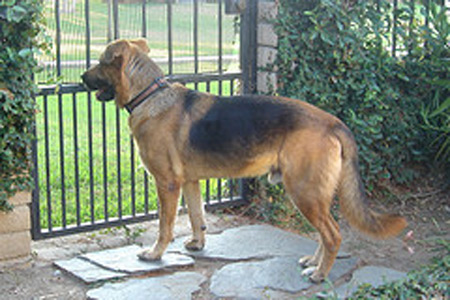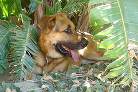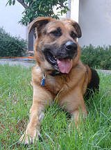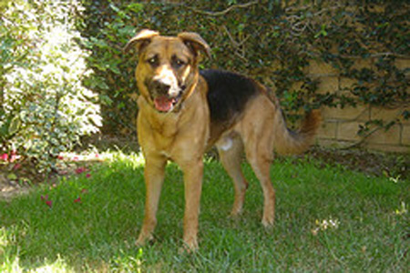 Jake is a real people person. He loves meeting new people, and would be just as happy as punch to be with his person or family 24 hours a day. Jake is probably a German Shepherd / Rhodesian Ridgeback mix, and true to the nature of both breeds, he is intensely loyal. His ideal home would be one where someone's around most of the day, or where he can just jump in the car and go along for the ride. Although he behaves and is not destructive when he's alone, he will try to find his person, so a secure yard is a must.
