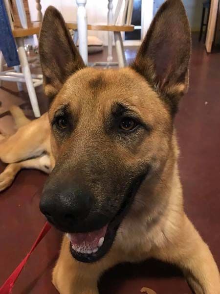 Jameson is a young boy, probably only a year of age, who was rescued from a high-kill shelter. He wasn't leash trained when he arrived, but has been in obedience boot camp and has been making great progress! He's the proud owner of a contagious smile, is gentle when taking treats, and is going to make a great addition to an active household.