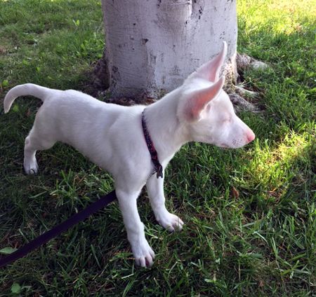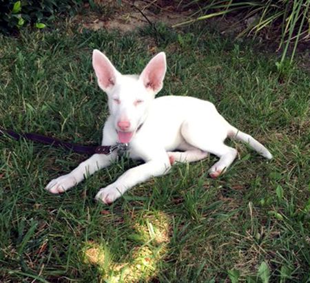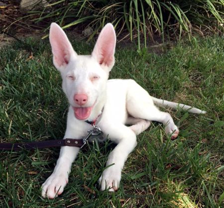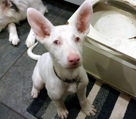 What makes Jasmine and her two brothers so special is they are Albino, which is really rare to see. While they are mostly the same as other puppies, they have sensitive skin and eyes so their new families will have to take a few extra precautions to insure they don't get sunburned and their eyes don't get damaged. Sunscreen and doggie goggles will help protect their sensitive skin if they're outside in bright sunlight.
