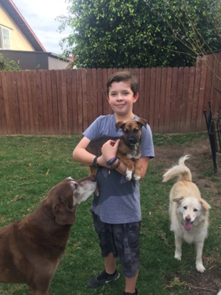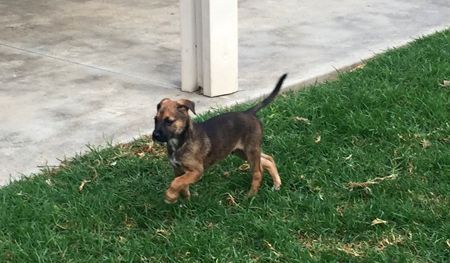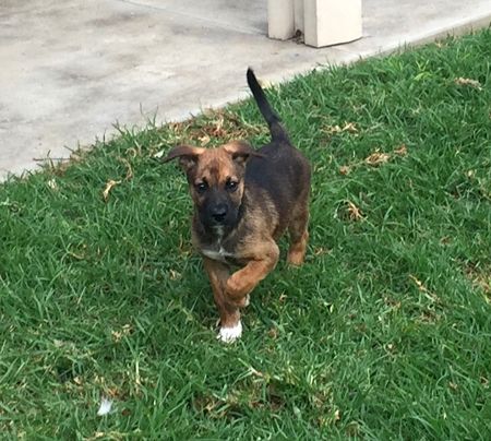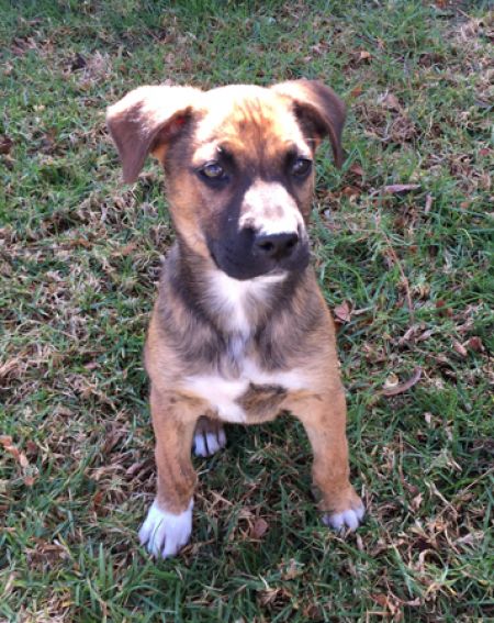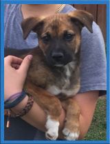 Jasper is TOTAL puppy. He LOVES to play and he doesn't care if his playmate is human or canine. He has an endless supply of energy and delights in trying to make any dog play with him. He has no fear and even stands up to the foster's grumpy old lab. He is in the chewing phase big time. So far he's swiped two shoes, socks, towels, and a blanket. The foster family has to keep an eye on him all of the time. He's doing okay in a crate at night and just started on the potty training.