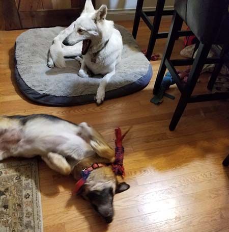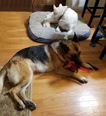 She's probably around 4-5 years old, ridiculously sweet with people, loves to follow you around, and is good with other large dogs. She had a pretty severe head tilt when rescued, but now it comes and goes and is much less pronounced. It will probably remain this way for life, but it doesn't bother her nor stop her from leading a totally normal life. Jaycee is crate trained, good in the house, and loves nothing more than to follow you or the other dogs around the house. She's a goofy, sweet girl who is going to make some lucky family very happy!