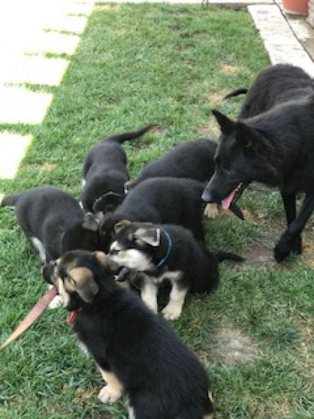 Meet the J litter! Their mom is Juno who is a small black German Shepherd. Their father is unknown. They were born in a shelter and went to a foster family in August. They are total love bugs and are total sweethearts! They have been around lots of people and other dogs. They are very social and sweet. We think that they may be a mix of German Shepherd and possibly Australian Shepherd.