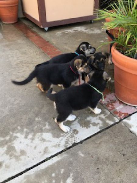 Meet the J litter! Their mom is Juno who is a small black German Shepherd. Their father is unknown. They were born in a shelter and went to a foster family in August. They are total love bugs and are total sweethearts! They have been around lots of people and other dogs. They are very social and sweet. We think that they may be a mix of German Shepherd and possibly Australian Shepherd.