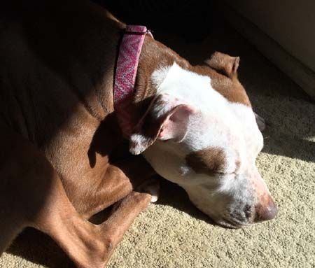 This sweet little girl, who likely just turned 3 years old, was pregnant when rescued and is the mother of our Q litter of pups, all of whom were adopted long ago. This cutie walks well on a leash, doesn't go looney tunes when she sees other dogs (just doesn't want them in her face), knows how to relax in the house and would love to be your best friend. Sadly, Jill has had a run in with other dogs where she didn't fare so well, but is physically doing great. Because of this incident, she is scared of other dogs and needs to be the only dog in your home. She may, however, be able to once again socialize with other dogs with the help of a trainer. Jill ADORES people, blankets and toys... especially balls! She has waited a long time for her happily ever after; could that forever home be with you?