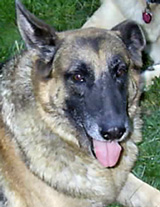 with two other adult dogs. She likes to hang out with Mitchell and loves cow