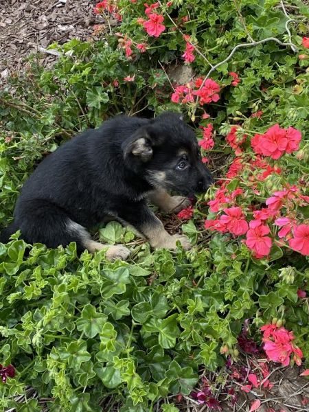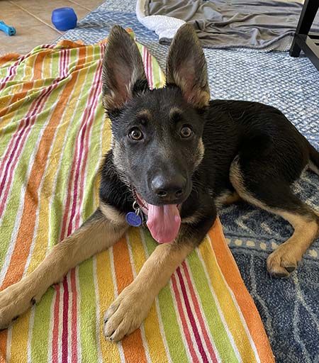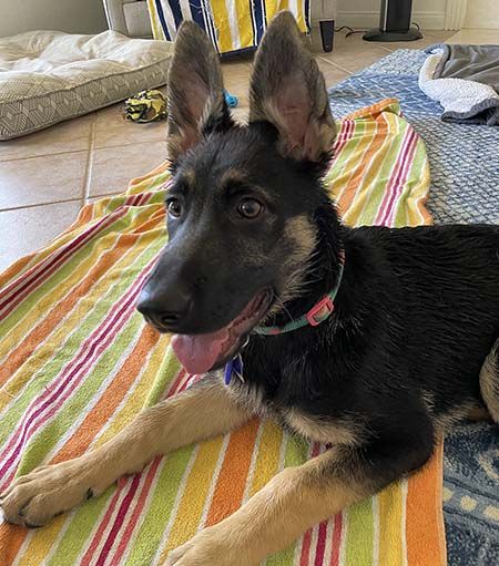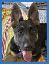 Kaila is Hawaiian for "stylish." This beauty with the big ears is a people dog. She, loves to be on your lap and will take naps there, and adores playing. She was the first pup in the litter to curl up and fall asleep on her fosters' laps. She is a sweet girl, has all of the energy that comes along with a young GSD, is mouthy and loves to chew on things, and is looking for a family who will appreciate the rambunctiousness of a baby land shark.