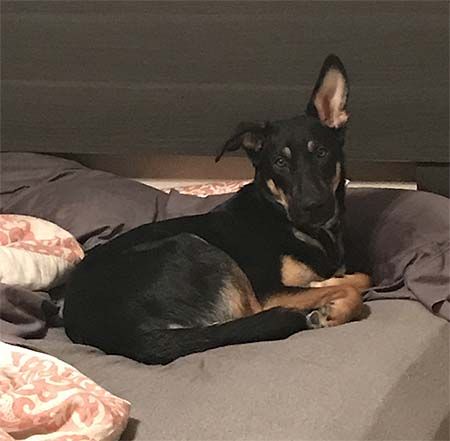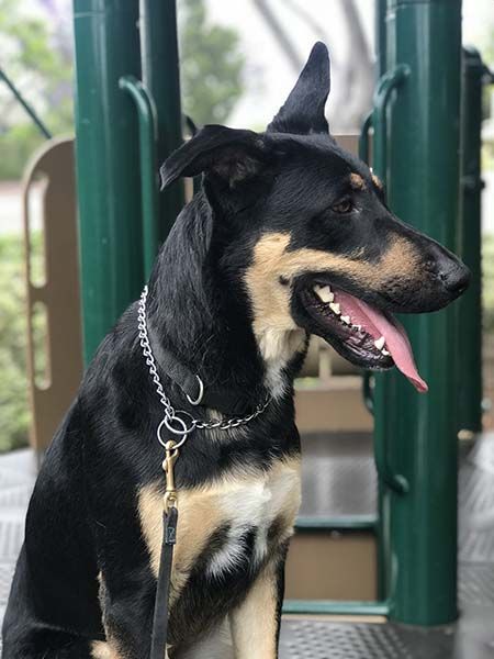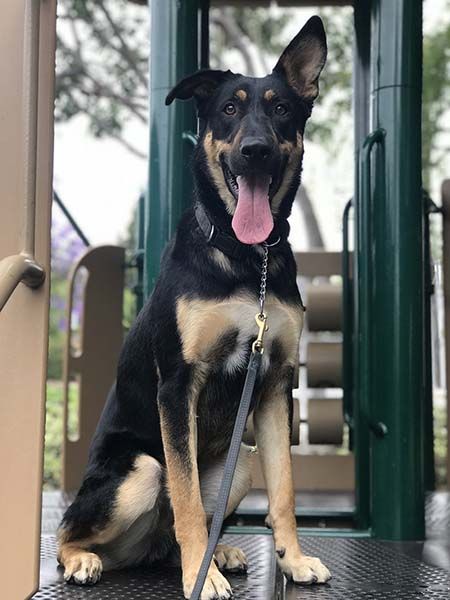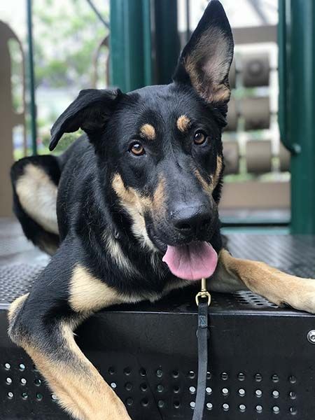 A year and ten months old, Kaiser grew up with kids, is potty trained, used to go to dog parks, and loves a ball (he knows "drop" and will comply every time). He hasn't interacted with small dogs nor cats, so we don't know how he'd do with them, but he knows basic commands, is good in the house, very responsive to verbal commands, has paws the size of an SUV, and is going to make an active family super happy to call him their own. ♡