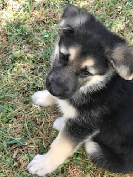 The "K" puppy litter and their gorgeous mom Daphne came from the high desert. Daphne is a traditional German Shepherd but we do not know what the father was. We think these puppies may be close to purebred.