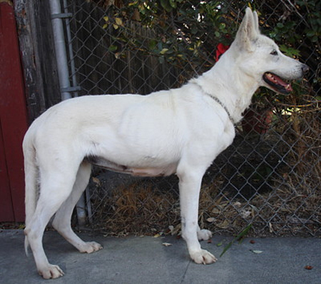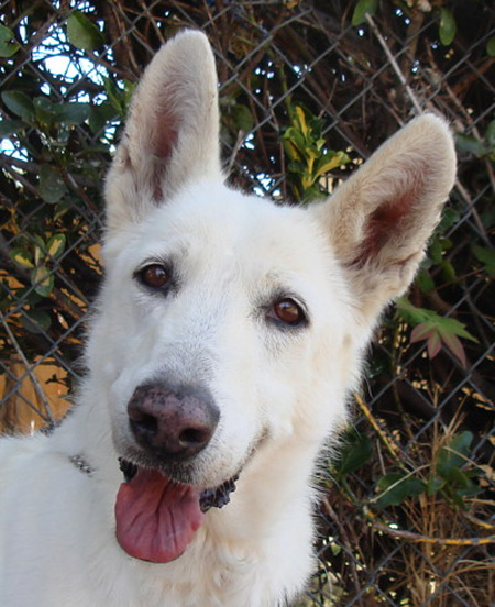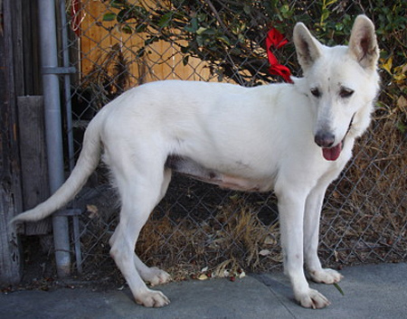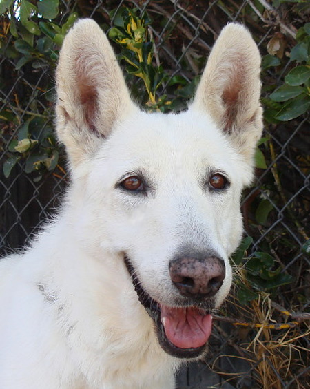 Katie is an outgoing 3 year old pure white Geman Shepherd. She has soft, expressive eyes and a short neat coat. Katie was found in an area loaded with breeders, and looks to have had puppies in the past. Her old life is gone now, and she is spayed and up-to-date on her shots. She is also micro-chipped. She gets along with her kennel mates, and her tail never seems to stop wagging. Katie is also good with cats. With such a positive attitude, Katie will make a new family very happy. Her love of life can't help but rub off on you! She is a ray of sunshine with four paws.