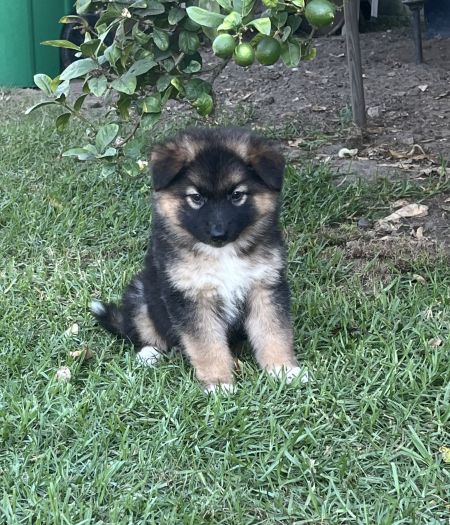 Kiki is two months old. Like her sister Karly, she is an adorable little fluff-ball. She has soft fur that is shades of black, brown, and tan with little white patches here and there. She has a sweet personality and loves to play with her sisters (Koko and Karly) in the foster's backyard, especially in the dirt. Kiki and her sisters are very pretty to look at but that doesn't mean they won't roll in the grass or play in a little dirt. All three sisters, especially Kiki, are very happy girls.