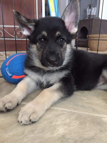 The "K" puppy litter and their gorgeous mom Daphne came from the high desert. Daphne is a traditional German Shepherd but we do not know what the father was. We think these puppies may be close to purebred.