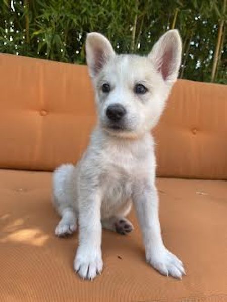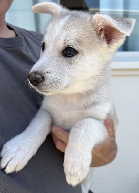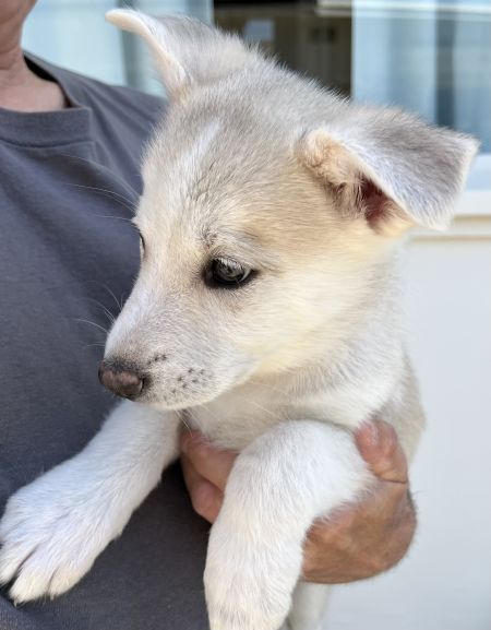 Inari and each puppy have been checked and treated by a vet. The puppies are eating solid puppy food and are healthy! They’ve had constant and connective interaction with the foster family members (even cats) and they love people!
