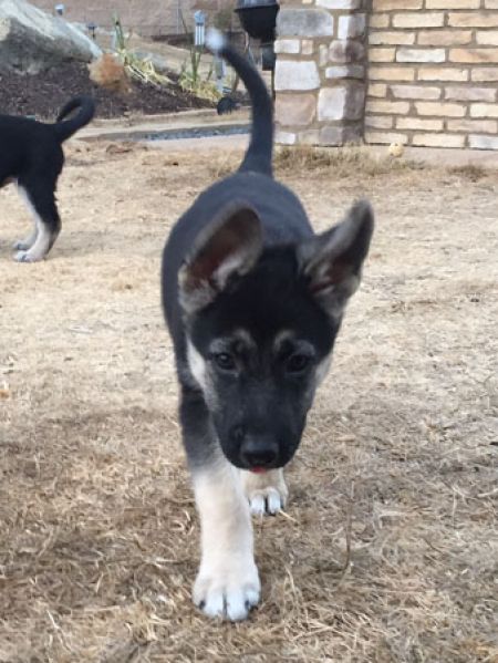 The "K" puppy litter and their gorgeous mom Daphne came from the high desert. Daphne is a traditional German Shepherd but we do not know what the father was. We think these puppies may be close to purebred.