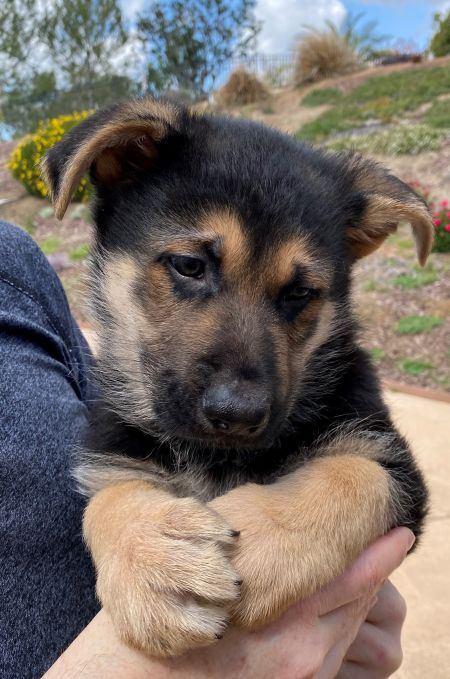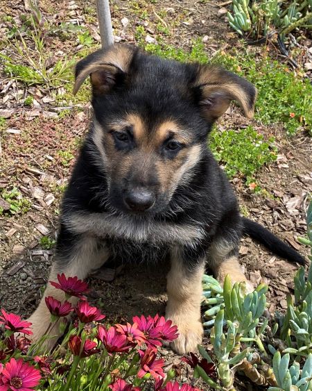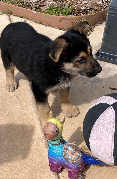 Koa is Hawaiian for "bold and brave". He is the tallest and biggest of the pups and is very smart. Koa's adopter should have previous German Shepherd experience as he may try to outfox a novice.