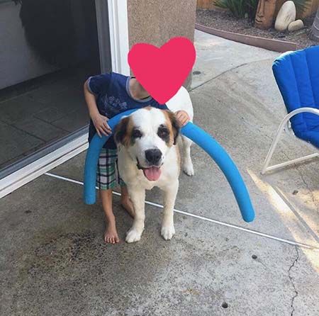 Kona is a super sized sweetheart who is around 4½ years old, adores people (kids included), is potty trained, a velcro dog who loves to follow you all over the house, athletic, and very affectionate. She came from a home with four children (ages 5 to 17) and was amazing with them, even acting as a lifeguard when they were in the pool. 😆