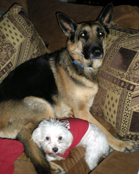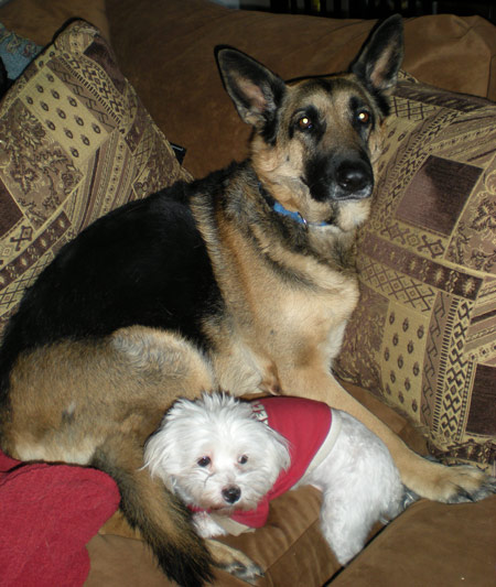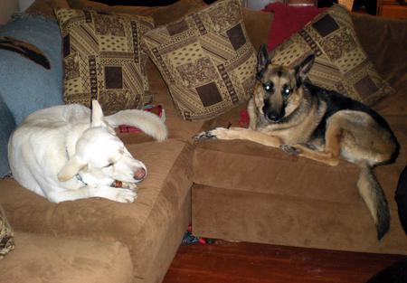 Recently, Lady was visited by a 6 month old shepherd for a play date. The two of them had a ball together. They ran and played, which is just what Lady needs to keep her New Year's resolution of recovering her girlish figure.