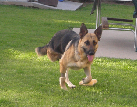 We are very happy to have Lana with us. She is a complete joy! Disabled dogs typically do not know that they are impaired. They run, jump, play Frisbee just like the rest of them!
