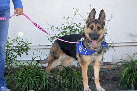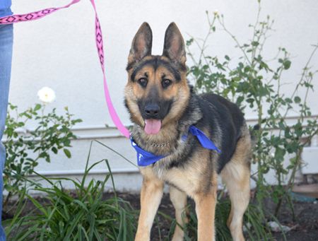 Lani is a gorgeous purebred German Shepherd Dog, probably just a year old, who was found wandering in South Orange County and picked up by animal control. Clearly never socialized prior to landing with us, she was unsure of other dogs and some men, but we're working with her and she's catching on quickly. She now can be in a group of dogs and have no reaction and has a few dogs who have become her buddies. Lani needs a confident owner who can be the leader, therefore making her feel secure, who can continue to work with her, resulting in a happy and balanced dog. This gorgeous girl loves people, is basic obedience trained, easy on a leash, potty trained, crate trained, and good in the house.