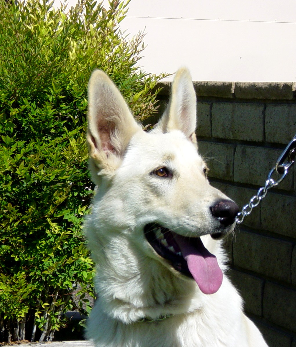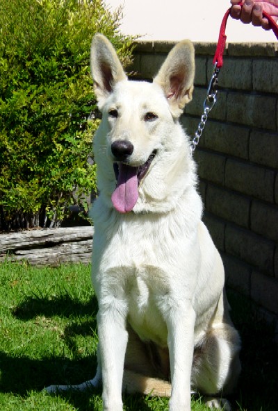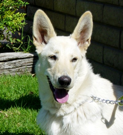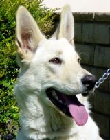 This white german shepherd sat in the back of her kennel just waiting for someone to take her out. She had been at the shelter for over a week and constantly looked over as she sat quietly in the back of her cage. When we got her out, she responded with huge puppy kisses and lots of wags! Laya is roughly a year old and appears to have been cared for as a pup. She responds to some basic commands and is very eager to learn.