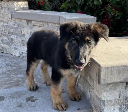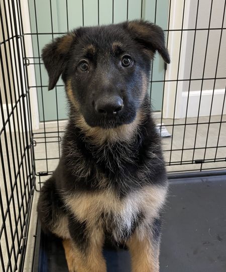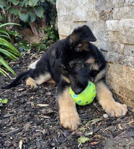 Leonardo is a very friendly ~10 week old pup. He is outgoing, likes other dogs, and gets super excited when his fosters greet him good morning. He is just a baby but already likes chasing the ball and playing with toys.