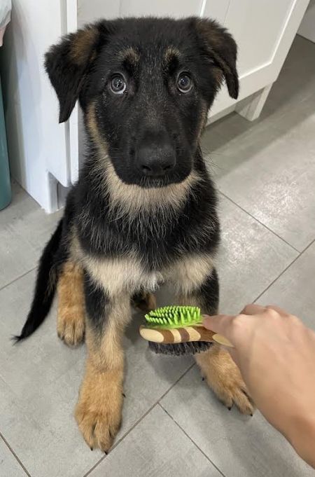 Leonardo just started leash training and that is going well as he is treat motivated. He loves belly rubs and doesn't mind a bath and brushing.