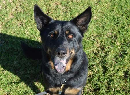 Leslie is a sweet girl who bonds quickly with people. She's smart as a whip, food motivated and learns new things very quickly. She's walked through a room full of dogs and shows no reaction, other than a few tails wags. She's a real cutie and takes treats very gently.