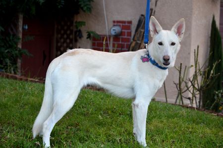 Because she was abandoned, it takes her a few minutes to warm up to people, but she is progressing very quickly now that she's in a foster home. She loves, loves, loves children and we recommend a home where she is around them. She is house broken and walks very well on a leash.