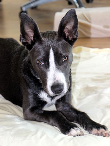 Lexus is a 4-5 month old black and white Lab Retriever/possible Border Collie mix. She is currently being fostered by a family that has another dog and three cats. She is extremely sweet and loves to play. She is interested in the cats and may occasionally chase them for fun. She came to us with a broken front left leg which has healed. Her leg is still strengthening but it does not slow her down at all.