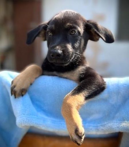 Liam is one of the puppies in our "L litter". The mom of the litter is Libby. Libby, another female German Shepherd, and a male black Labrador Retriever were found on a farm in Riverside County. Libby was pregnant and the other Shepherd had just given birth to a litter of puppies. The black Lab is thought to be the dad of both litters.